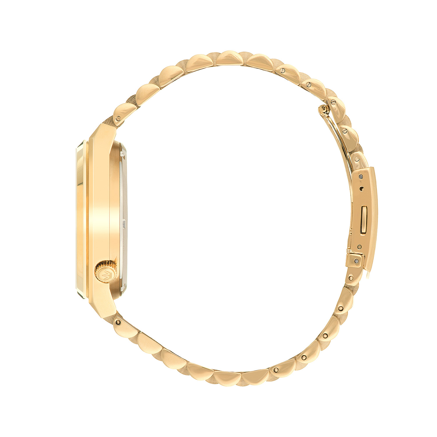 Корпус диаметром 40 мм выполнен из прочного сплава нержавеющей стали и имеет универсальную круглую форму, которая комфортно сидит на запястье любого объема. Как корпус, так и браслет имеют стильное IP-покрытие цвета желтого золота. Это не только придает часам роскошный и дорогой вид, но и обеспечивает дополнительную защиту от появления царапин и потертостей в процессе носки. Черный циферблат создает идеальный контраст, на котором великолепно смотрятся нанесенные риски и стрелки, также выполненные в цвете желтого золота.