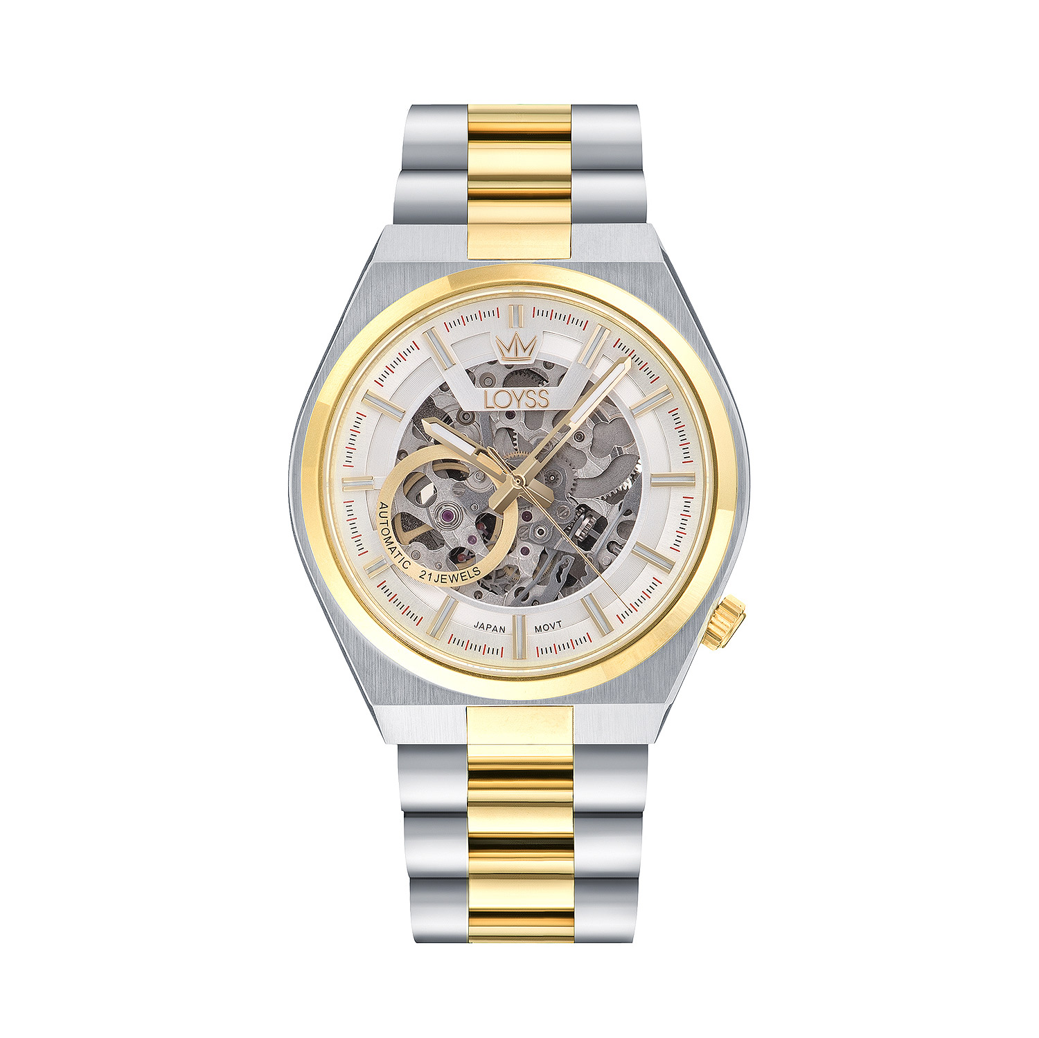 Откройте для себя безупречный стиль и надежность с мужскими механическими часами Loyss LS1001-03. Эта модель — воплощение классической элегантности и современного подхода к часовому искусству. Часы выполнены в благородном комбинированном цвете: серебристый корпус эффектно сочетается с ободком цвета желтого золота, что придает аксессуару утонченный и статусный вид.