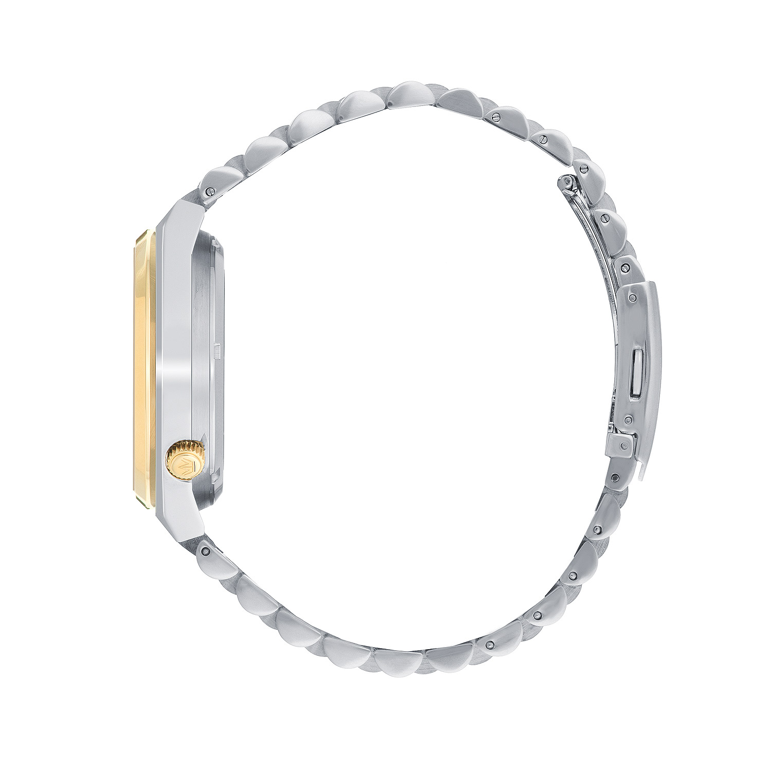 Корпус диаметром 40 мм выполнен из высококачественной нержавеющей стали и имеет IP покрытие, которое обеспечивает дополнительную защиту от царапин и потертостей, сохраняя безупречный внешний вид долгие годы. Браслет из нержавеющей стали также имеет комбинированное покрытие: классическое серебро по краям и изысканная полоса цвета желтого золота в центре, что создает гармоничный ансамбль с корпусом. При необходимости браслет можно легко укротить под любой размер запястья, обеспечивая идеальную посадку руки.