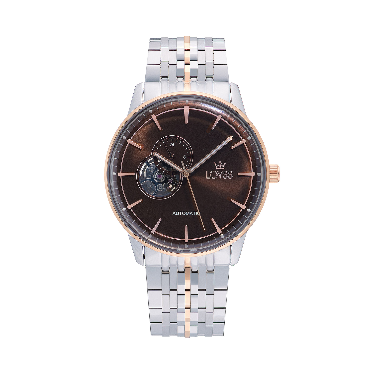 Откройте для себя безупречный стиль и надежность с мужскими механическими часами Loyss LS1002-06. Это не просто аксессуар для измерения времени, а настоящий предмет гордости, подчеркивающий ваш безупречный вкус и статус. Модель выполнена в элегантном комбинированном цвете: классическое серебро корпуса идеально сочетается с ободком цвета розовое золото, создавая изысканный и современный образ. Этот благородный дуэт продолжается и в дизайне браслета, где центральное звено отливает теплым розовым золотом, делая часы узнаваемыми и уникальными.