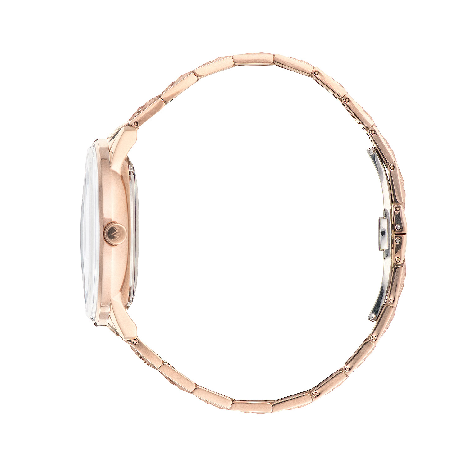 Корпус диаметром 42 мм выполнен из высококачественной нержавеющей стали с изысканным IP-покрытием цвета розовое золото. Это универсальный размер, который одинаково комфортно сидит как на узком, так и на широком запястье. Браслет из нержавеющей стали в тон корпусу не только выглядит монолитно и дорого, но и обеспечивает надежную фиксацию. При необходимости браслет легко укорачивается под любой размер запястья.